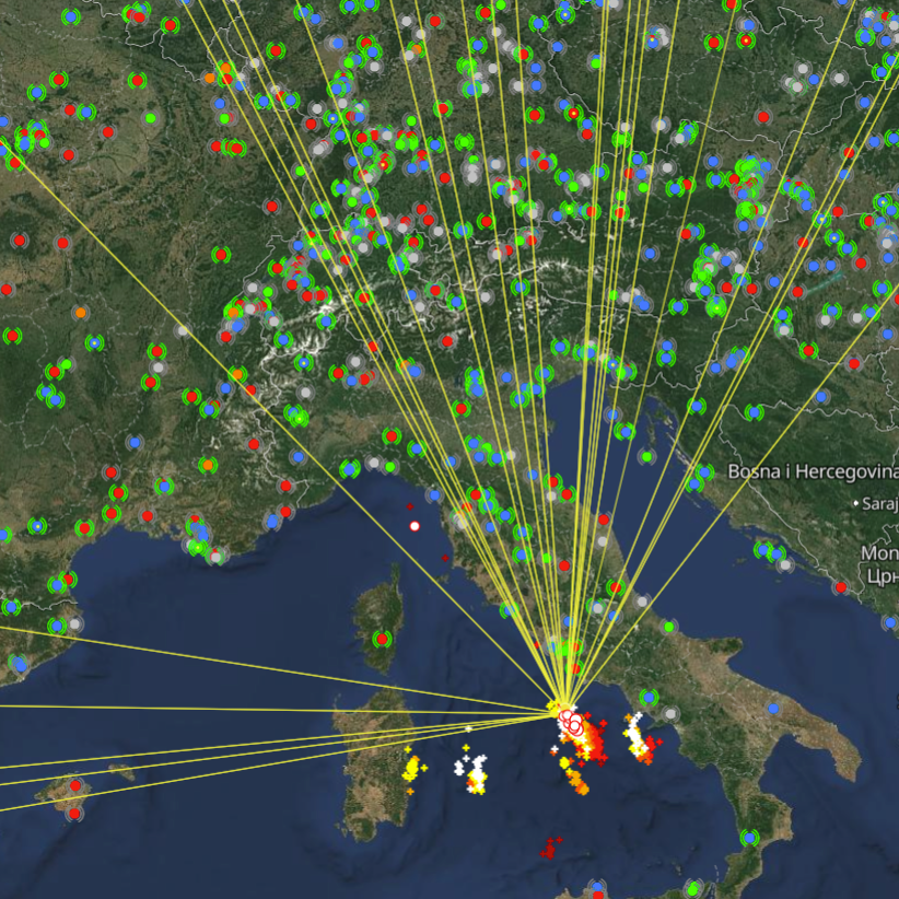 Questa Stazione Meteo di rilevamento dei Temporali in tempo reale da sola servirebbe a poco, ma assieme a migliaia di altre stazione consente di geolocalizzarli con un ritardo medio di 5/9 secondi. La mappa che se ne ottiene è già…